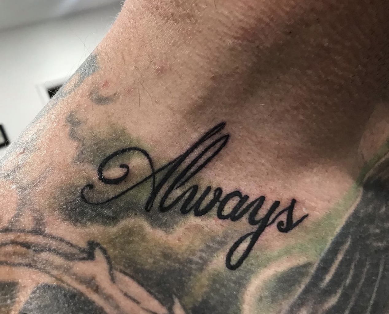 Lettering tattoos are a popular style of tattoo that focus on the beauty of the script and font style as well as the meaning of the words. We can help you choose the ideal font and style for the tattoo you have in mind. Here is a small sample of lettering tattoos we have created for clients.